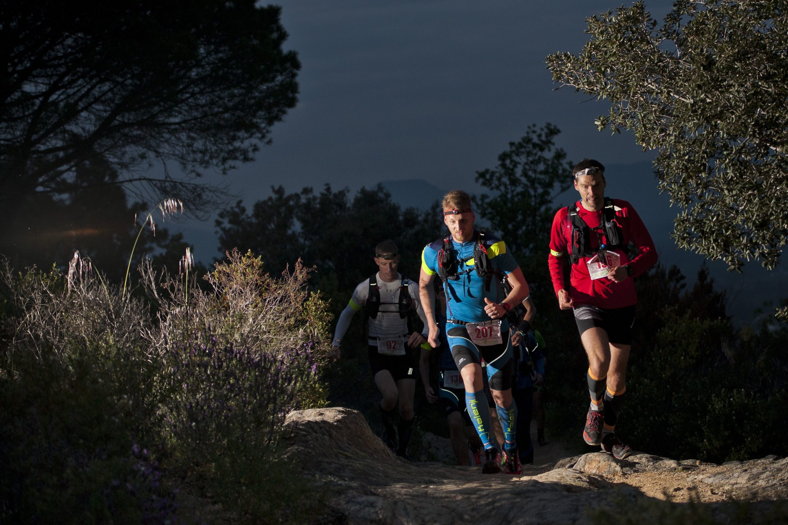 Après une rapide traversée du village médiéval de Roquebrune, se profilera déjà la première difficulté (1km à 10% sur bitume) pour étirer le peloton avant de s’enfoncer dans la foret de Cavalière. Guidés par les lucioles lumineuses accrochées aux arbres, les coureurs chemineront alors au fil de l’eau jusqu’au ravitaillement du lac des Clos (profil majoritairement montant) situé à mi-parcours. Les moins ambitieux pourront y profiter d’un spectacle « son et lumière » en pleine nature avant de redescendre vers le village par une large piste éclairée par la lune (3 km) puis de serpenter le long de la Maurette entre sentier et rochers. De nouveau un peu de piste (700 mètres) pour décontracter les muscles avant le juge de paix, un dernier petit single en côte (500m), et la descente finale vers l’arrivée (1 km) sur route.