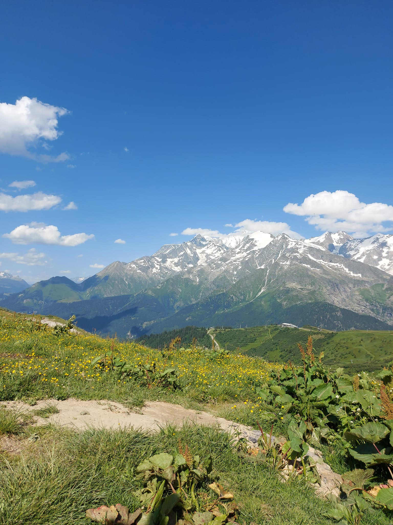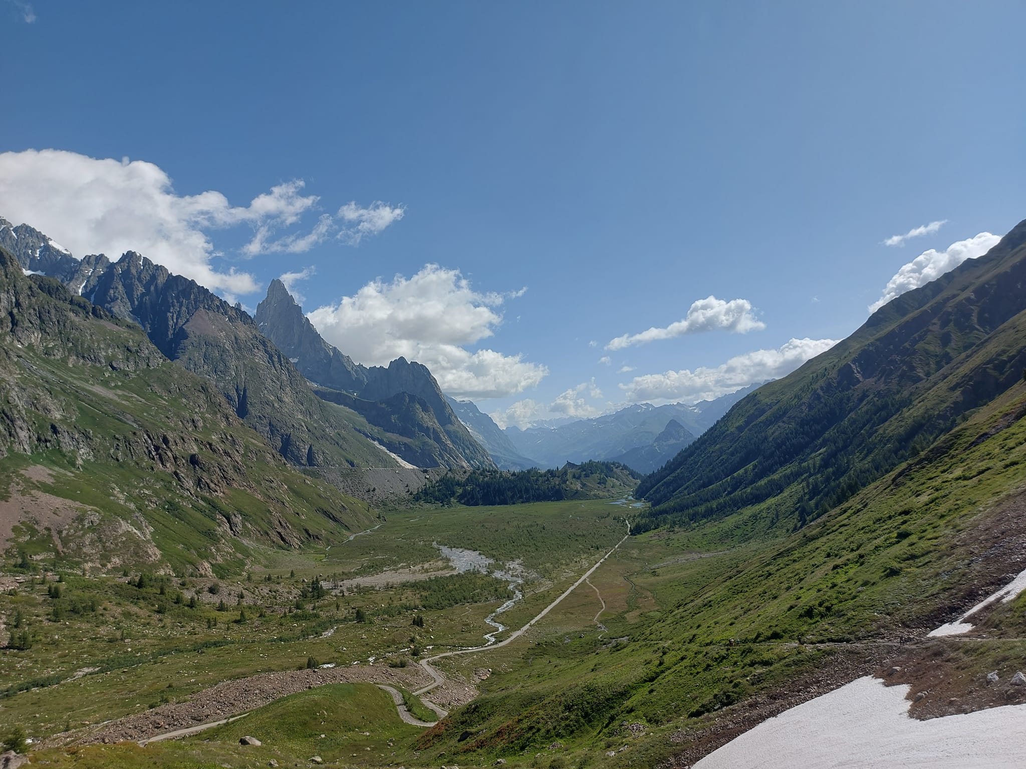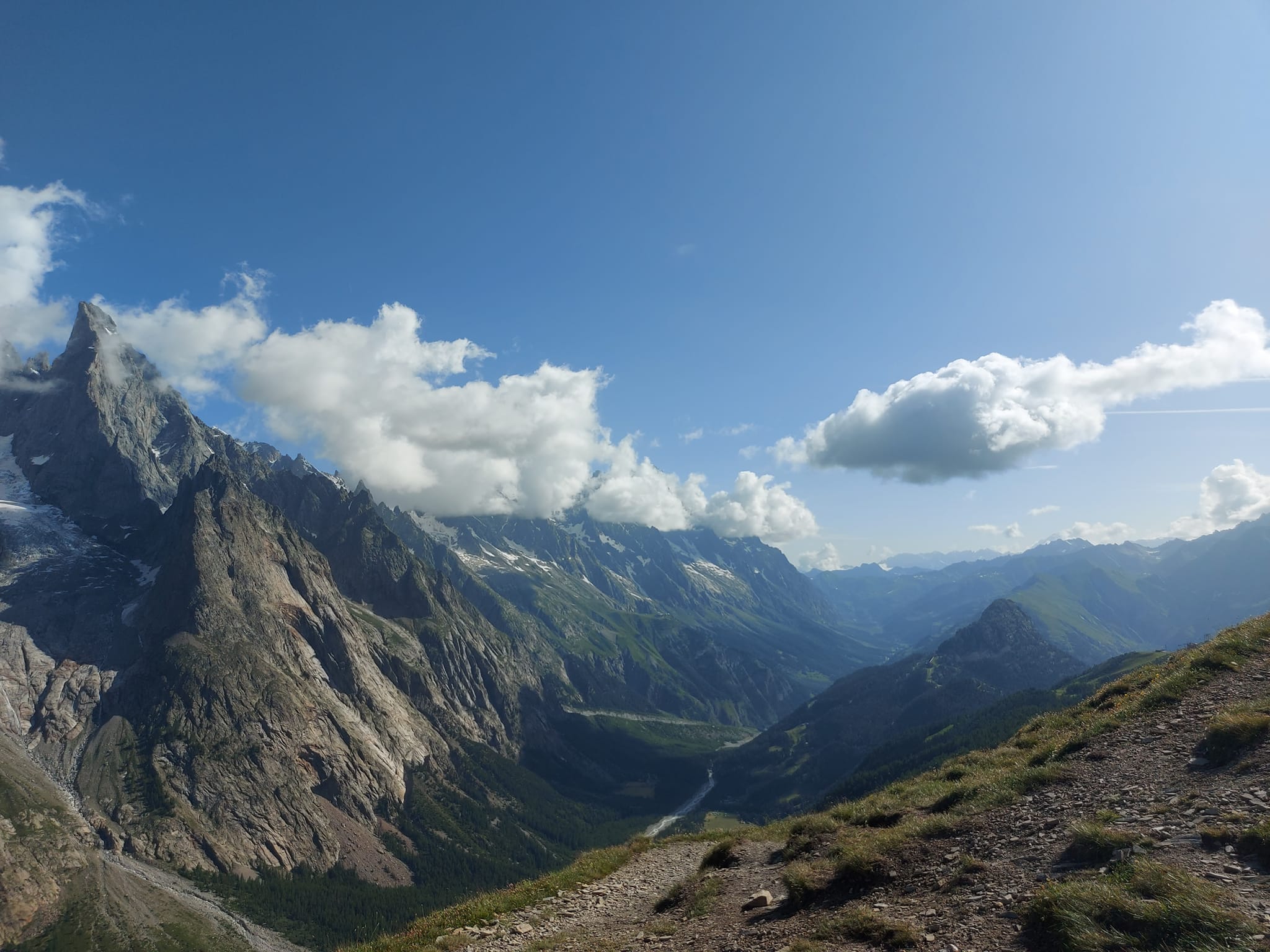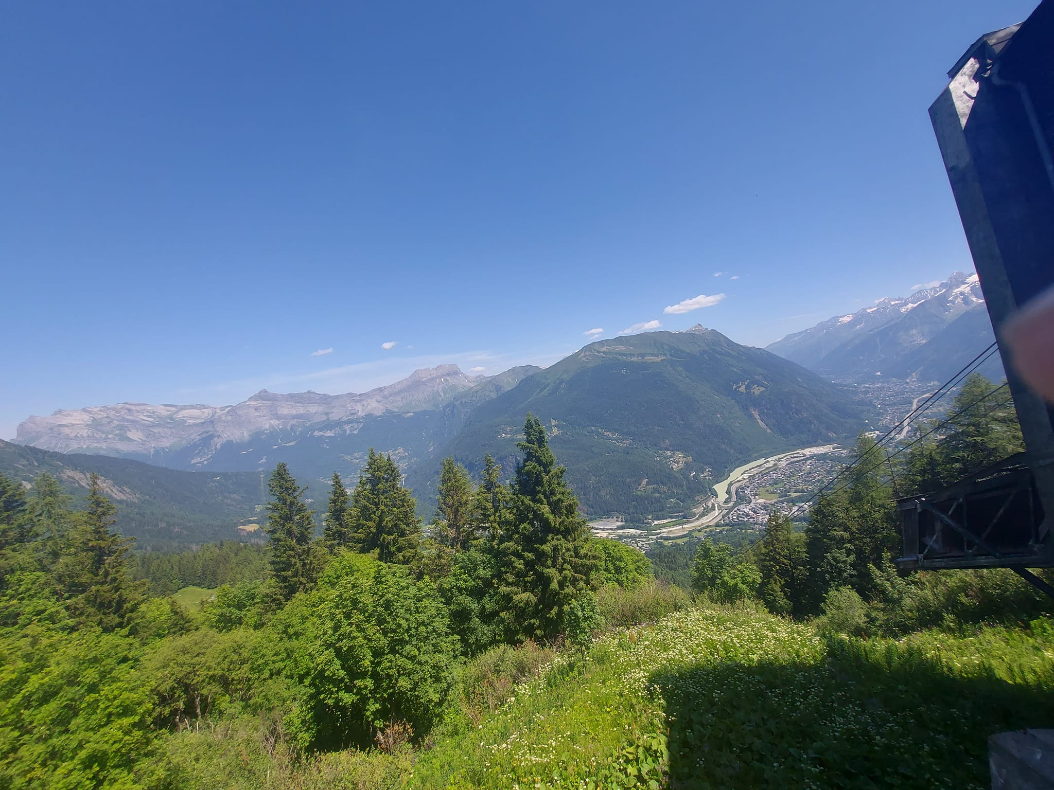 On traverse les Contamines avant d’entamer une première ascension vers les chalets du Truc avant d’aller vers le refuge du Miage, lequel va nous envoyer vers la principale difficulté de la journée, et vers potentiellement la dernière grosse difficulté de la course (il ne faudra pas se dire pour autant que c’est gagné), à savoir l’ascension du col de Tricot. On le voit depuis longtemps, et avant de le monter, il faut descendre assez bas pour aller le chercher. Il se passe plutôt bien et, quand on est là haut, on voit le col du Joly et on se rend compte de ce qu’on a fait la veille. On va alors se diriger vers les Houches avec une descente pas trop raide, mais potentiellement piégeuse. Après deux « petits » coups de cul et une dernière descente facile (mais qui risque d’être très longue), on arrive aux Houches et forcément, on commence à se dire que ça sent bon.