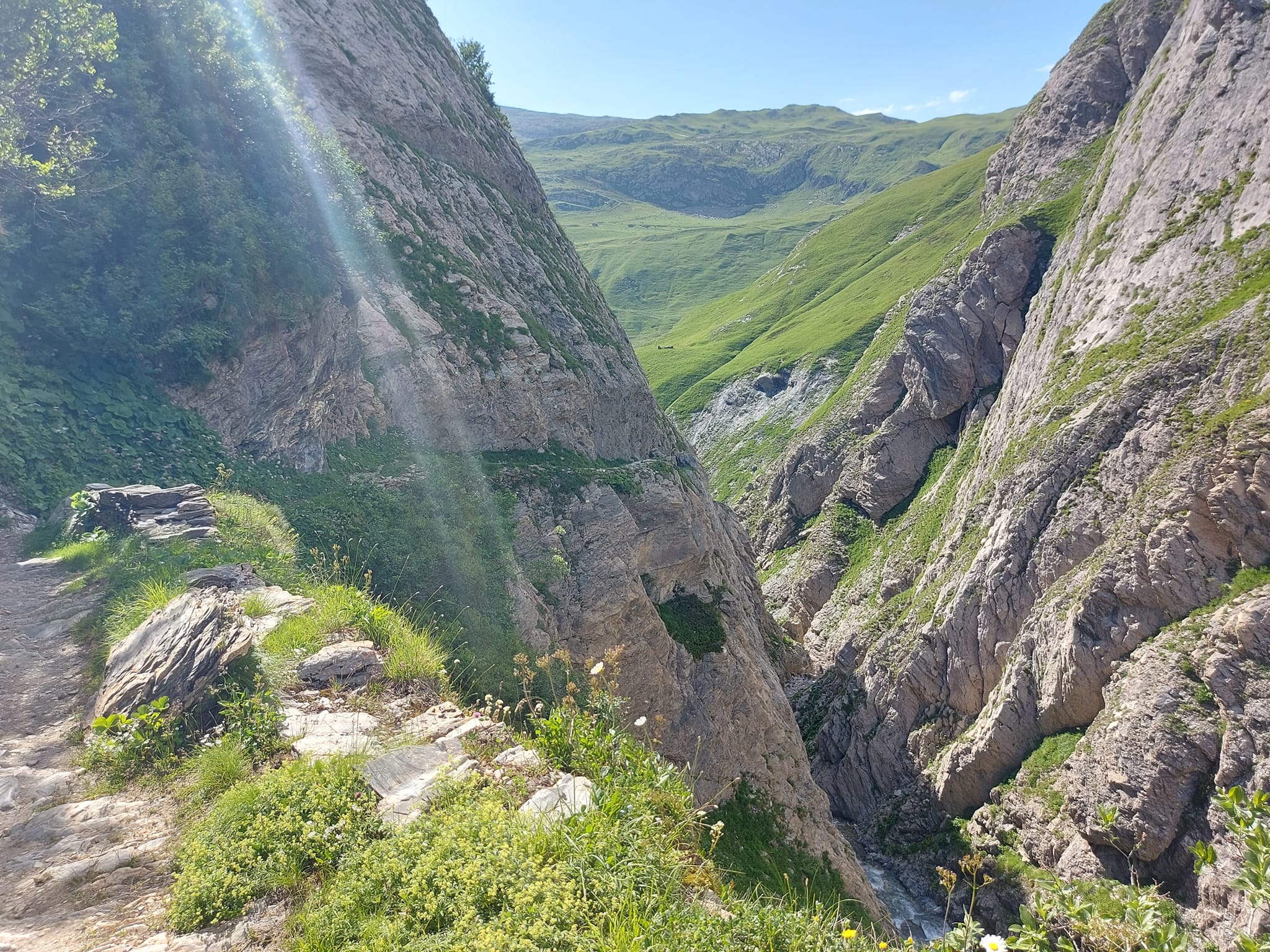 Ça continue de monter et de descendre, mais c’est moins sauvage qu’autour du Passeur, et ça fait du bien. On arrivera finalement au refuge de la Gittaz pour passer la nuit, juste après être passé par le chemin du curé. Et là, de nouveau, c’est quelque chose d’assez unique. La portion doit peut-être faire deux kilomètres (avec ce qui se parcourt avant), et elle est d’une indescriptible beauté. Aucune photo ne saurait transcrire ce qu’on voit. Aucun mot ne saurait décrire le paysage qu’on traverse.