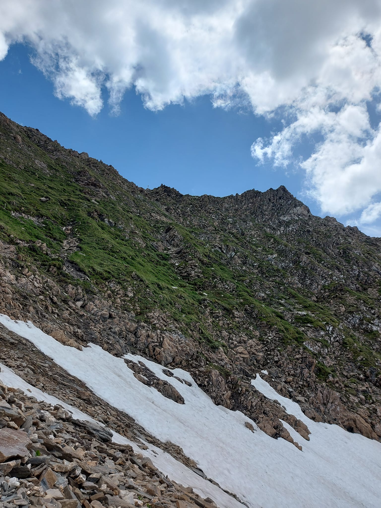 Après une petite balade sur le plateau, on va commencer l’ascension vers le Passeur de Pralognan. Il y une descente et une portion de montée bien hards, mais tout ceci n’est rien encore. Car le Passeur, seigneur dieu… Un de mes partenaires m’a dit pour me rassurer qu’une fois qu’on l’avait fait, ça passait mieux. J’espère qu’il a raison, car sur le début de la descente, j’ai fait de l’huile. Et ça a beau n’être qu’un accident, on a du mal à ne pas penser à ce qui s’est passé en 2021. D’ailleurs, un des coaches nous a expliqué que le passage avait été un peu nettoyé et sécurisé ; autant dire que je n’ose pas imaginer à quoi il ressemblait avant. La partie la plus technique ne fait finalement que 300 mètres, peut-être moins. Mais quand on est dedans, la sensation est assez étrange. Le temps semble s’arrêter, se figer. Rien ne bouge, rien ne se passe. Puis après une descente qui dure assez longtemps et qui peut être un peu piégeuse, on finit par retrouver un sentier de randonnée qui va nous amener au cormet de Roselend, lequel marque l’entrée dans le Beaufortain.