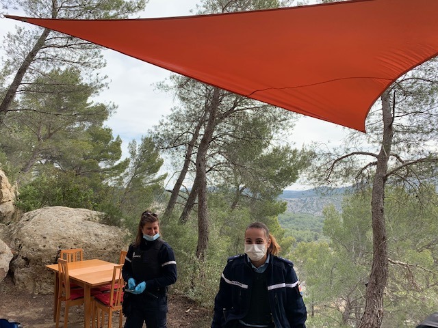 J’espère que c’est la première option, car verbaliser des SDF pour non respect du confinement, ça serait du génie… vu l’installation des mecs avec le haut vent, c’est pas des SDF. Pour monter à la Sainte avec ce matos il faut un petit camion. Depuis la ville, impossible.