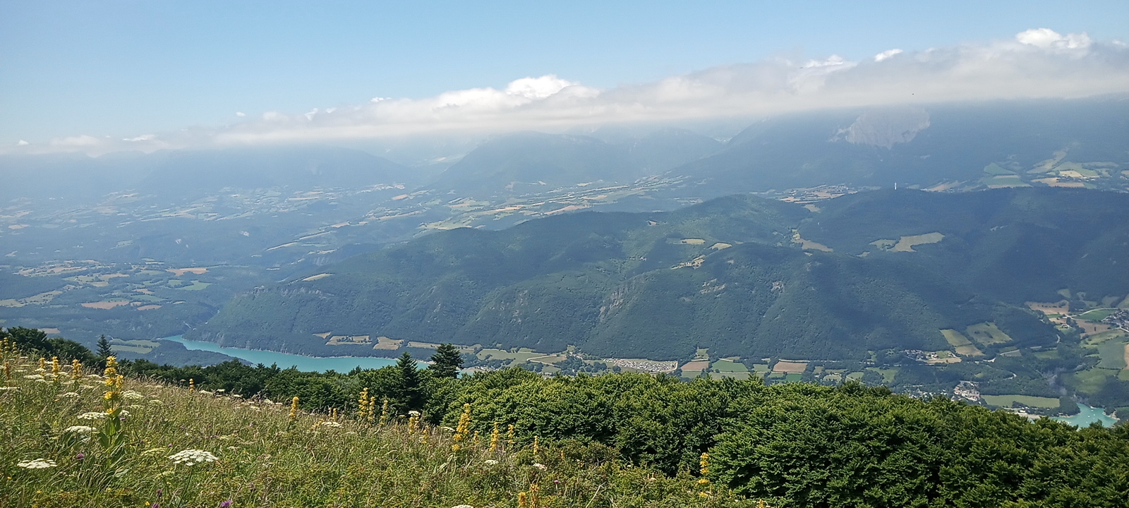 La première (voire la principale difficulté) va arriver, avec une quinzaine de kilomètres pour arriver en haut du Sénépi. Alors ça prend quelques heures, il faut ménager sa monture. L’avantage, c’est que dès qu’on monte, on est obligé de marcher, et on se fatigue moins vite (c’est d’ailleurs pour ça qu’un trail en montagne me fait moins peur qu’un trail en vallée). Puis quand on arrive en haut du Sénépi, le temps semble s’arrêter. On est quasiment sur une arrête, avec la vallée du Sénépi d’un côté, le lac du Monteynard de l’autre. Ce sont des images dont la beauté vous marque à jamais.