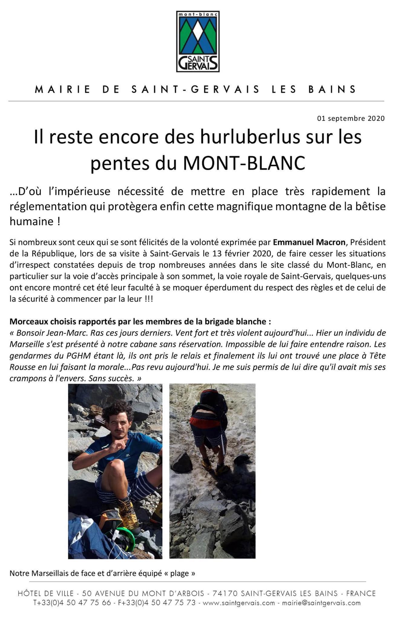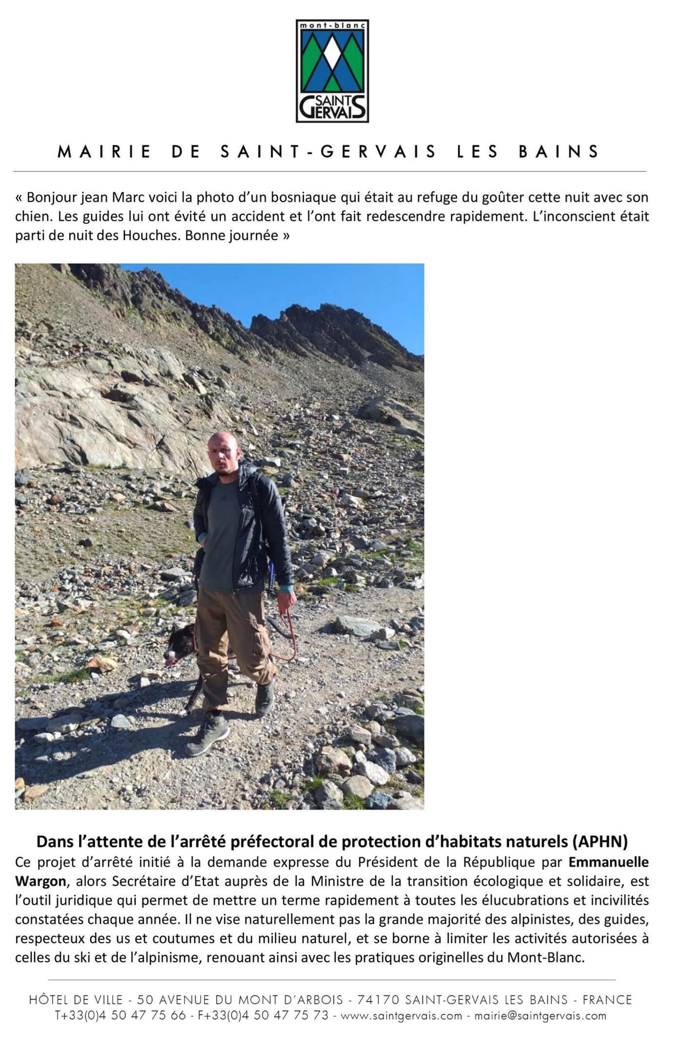Car ça fait des mois, voire des années qu’il mène une lutte assez intense contre ceux qu’il appelle les « hurluberlus du Mont Blanc », qui sont la plupart du temps des randonneurs et des trailers qui tentent de gravir le sommet de l’Europe dans des conditions peu adaptées. Pour ce faire, il a soumis (avec les concours des communes de Chamonix et des Houches) un arrêté préfectoral à la consultation publique.
