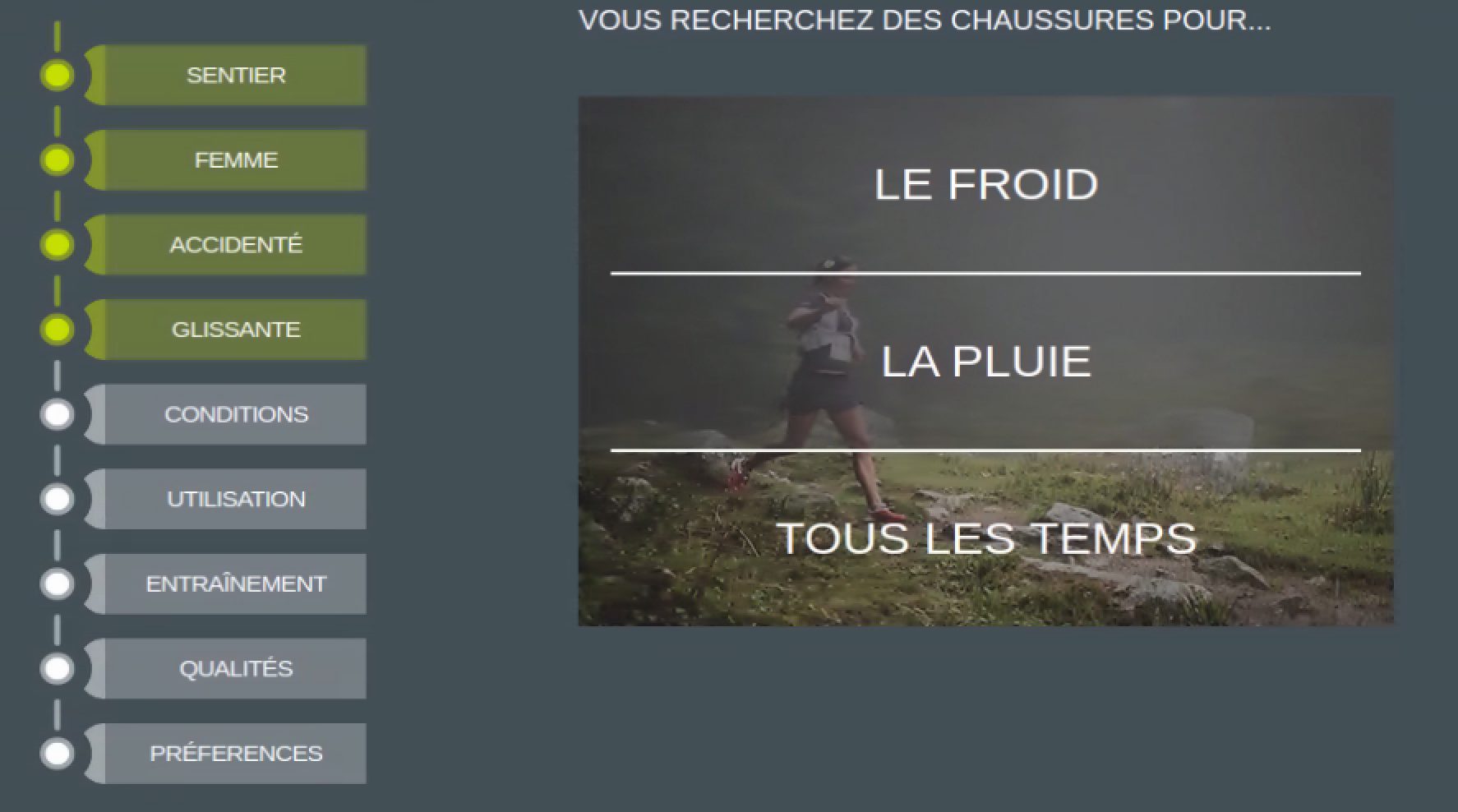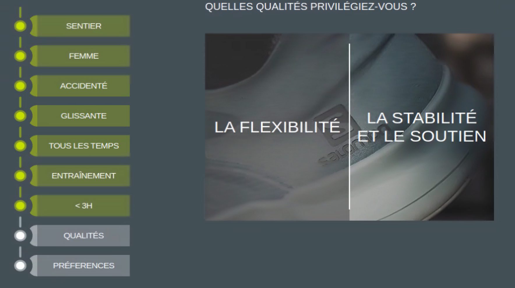 C’est vraiment un outil précis et efficace au service des runners et des traileurs. Avec le « shoe finder Salomon » on peut dire que j’ai bien été guidée dans ma recherche de choix de chaussures sur le site… et tout cela très rapidement et en seulement quelques clics.