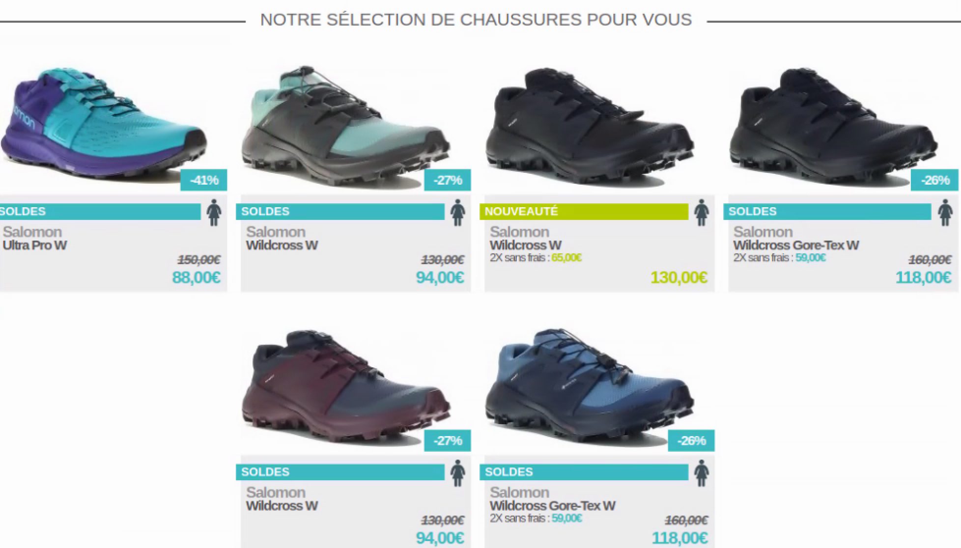 Au final, le shoe finder Salomon me sort les modèles qui me correspondent le mieux et c’est marrant car c’est justement le modèle sur lequel je lorgne depuis quelques temps : la Salomon Wildcross ! Trop bien !