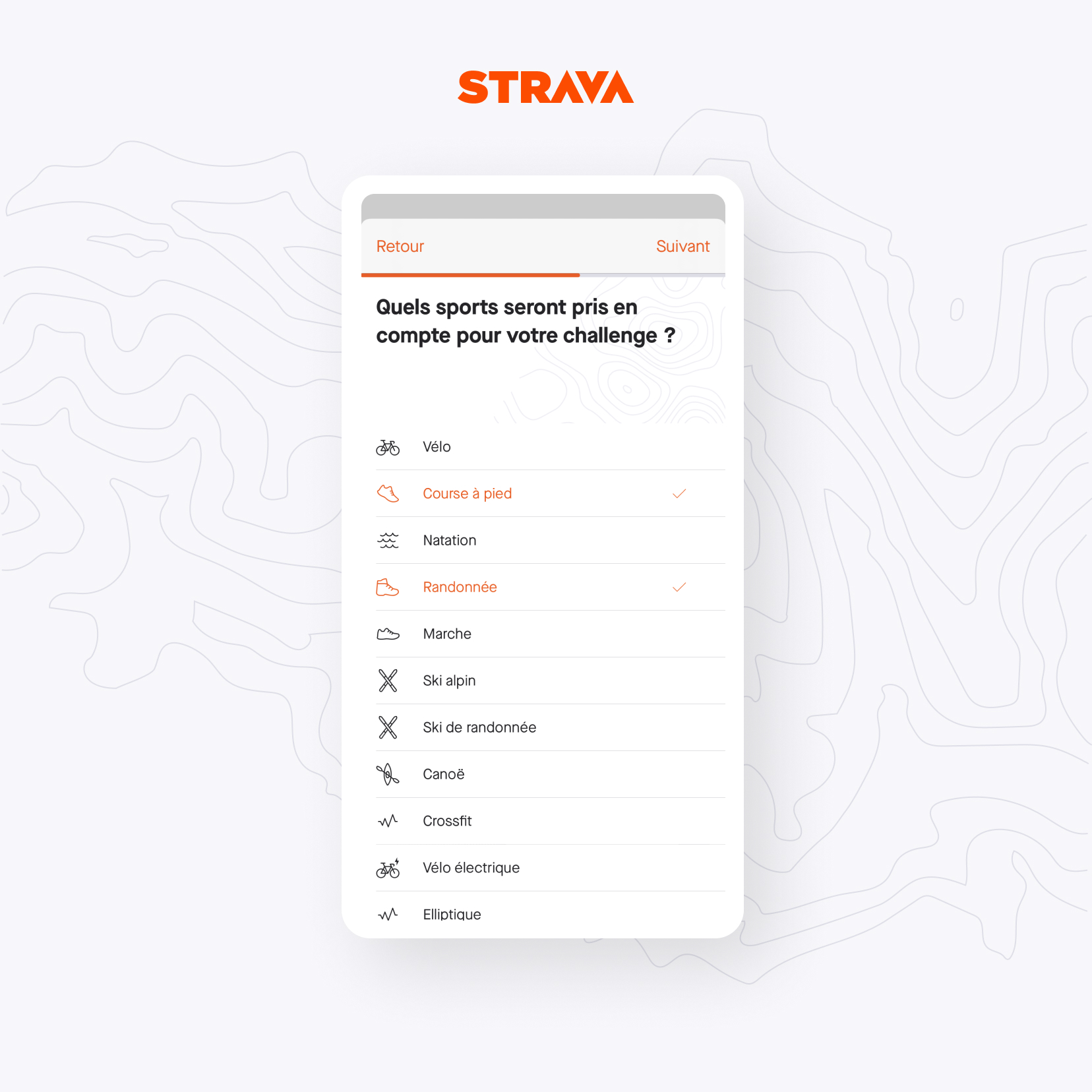 Le créateur du challenge choisira un objectif parmi ceux proposés (le plus d’activités, l’effort le plus rapide ou la plus longue distance), la durée ainsi que les sports pris en compte (parmi les 32 sports pris en charge par Strava).