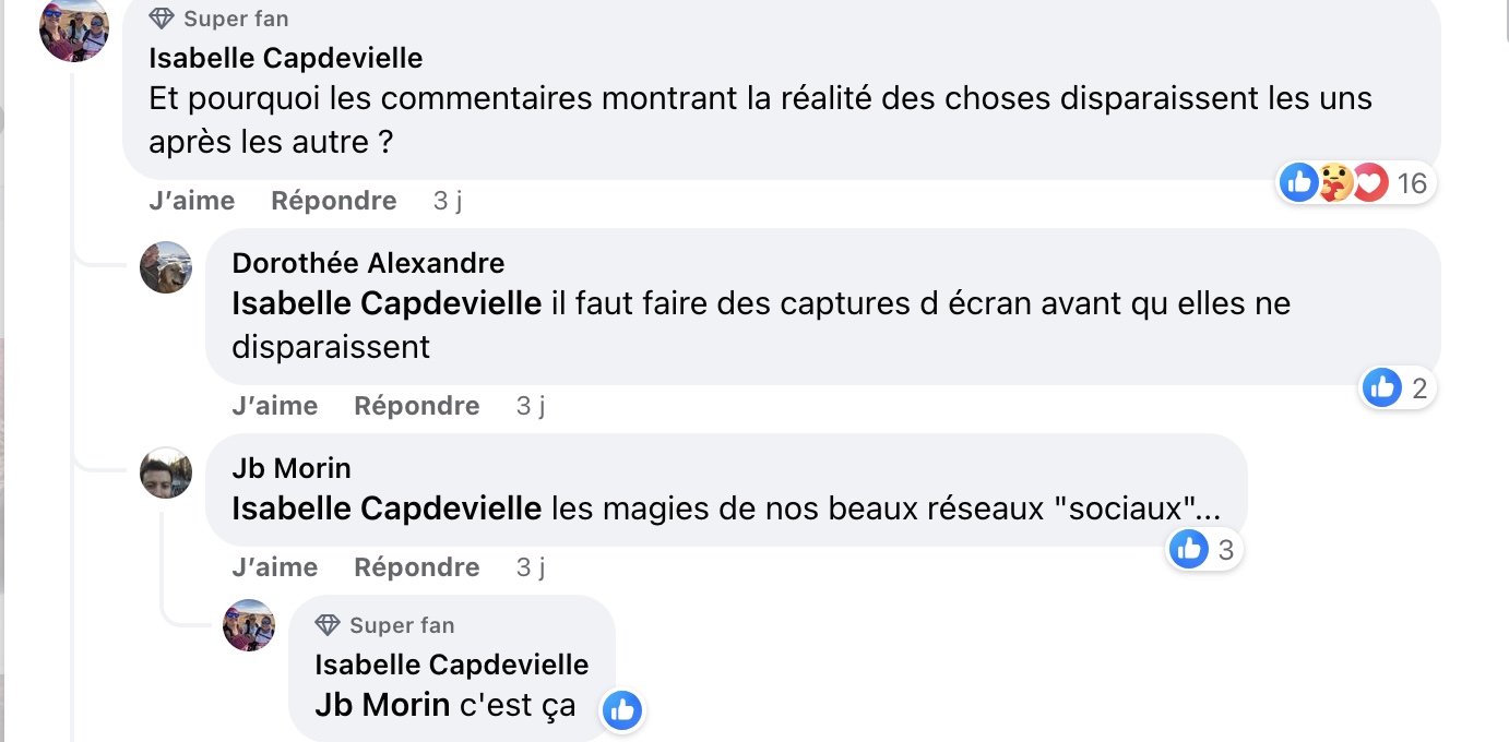 Sources, témoignages Facebook