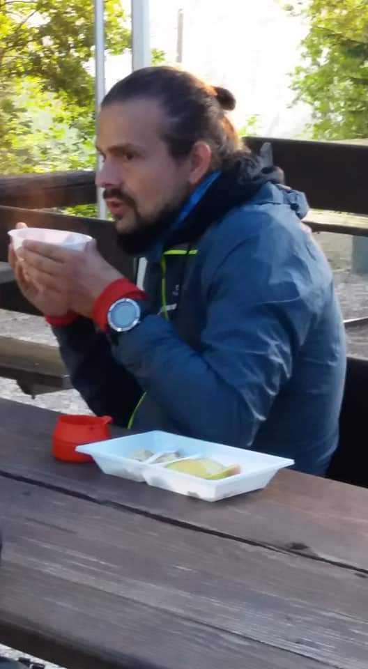 On arrive au ravito de la mi-course, les sensations restent bonnes, pas encore de temps faible. Mes compères s’arrêtent, mon entraîneur leur succède pour m’accompagner pendant 20 à 25km