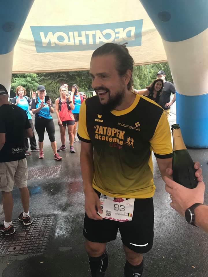 Pour les deux trois derniers km, mon entraîneur nous rejoint, de même que mes ange gardiens. Tout se fait dans une euphorie bon-enfant et assez dingue. Et quand on voit l’arche d’arrivée, la douleur et la souffrance disparaissent pour laisser place à la fierté et au bonheur d’être entouré par des personnes que, quoi qu’il advienne, vous êtes certain de ne jamais oublier. Simplement car ces moments resteront à jamais gravés.