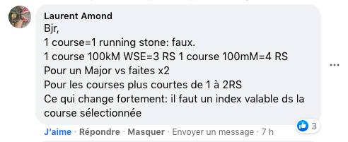 Alors donc un running stone correspond à une chance d’être tiré au sort pour l’UTMB, la CCC, la TDS et l’OCC. Les RS (Running Stone) sont cumulables, et chaque RS vous donne une chance supplémentaire d’être tiré au sort.